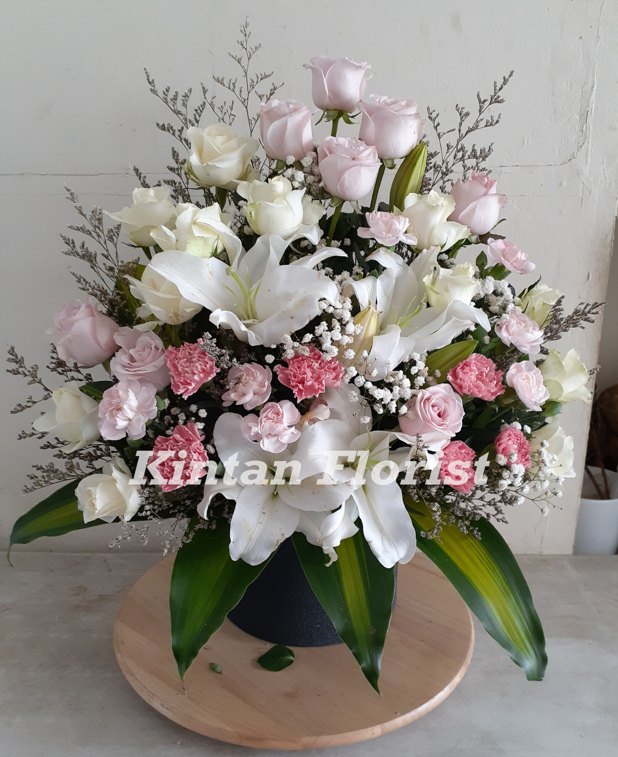 Home / Flowers in Boxes and Baskets / FB002FB002Rp450.000Arrangements of white roses, pink roses, white lily, pink carnation, white carnation, baby breath, caspea and sarigading in the box FB002 quantity add to cart SKU: FB002 Category: Flowers in Boxes and Baskets Product ID: 1943