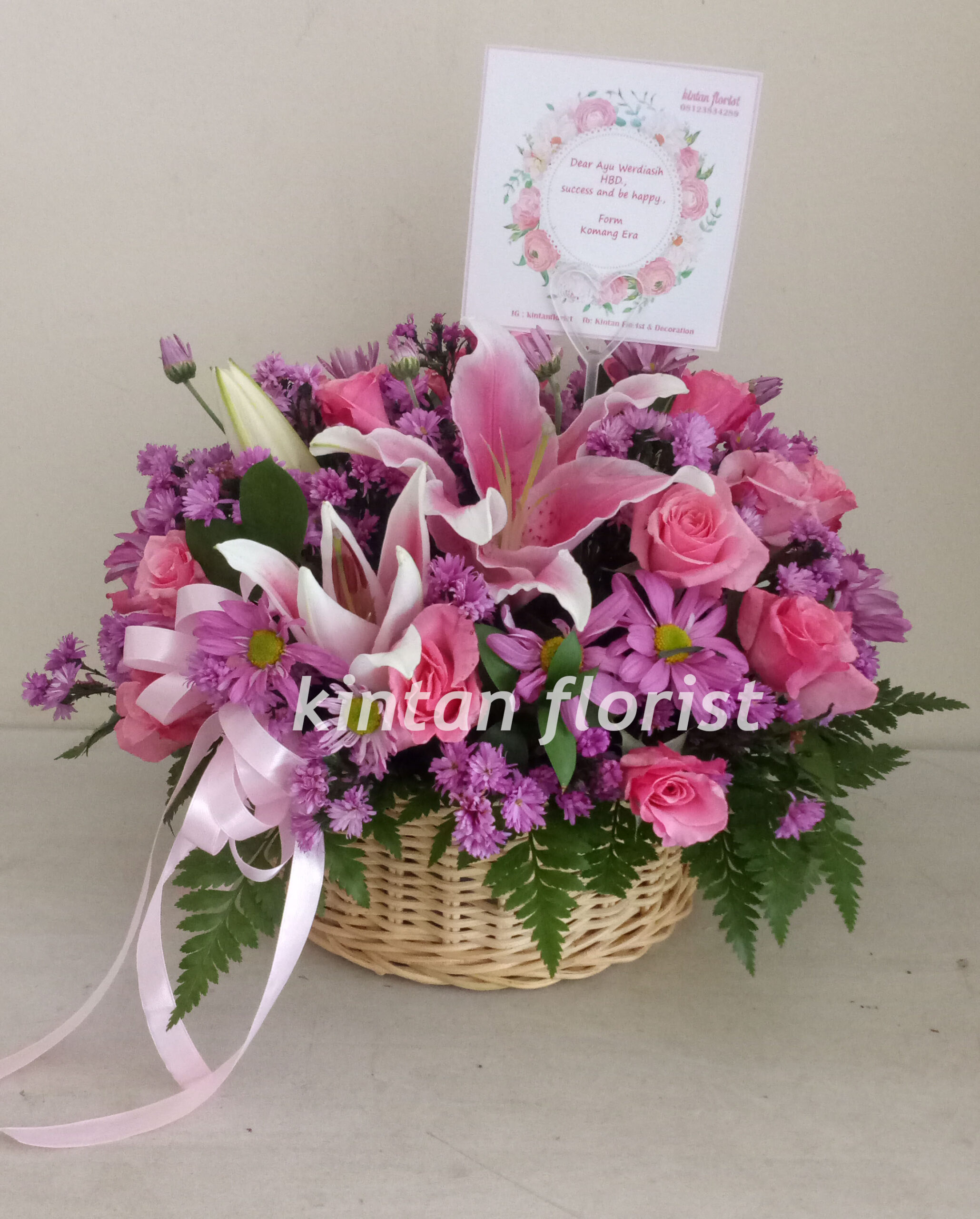 Home / Flowers in Boxes and Baskets / FB009FB009Rp400.000Arrangements of pink roses, lily pink, peacock pink, pink chrysanthemum, ruskus leaves and leather leaf in a basket vase FB009 quantity add to cart SKU: FB009 Category: Flowers in Boxes and Baskets Product ID: 2100