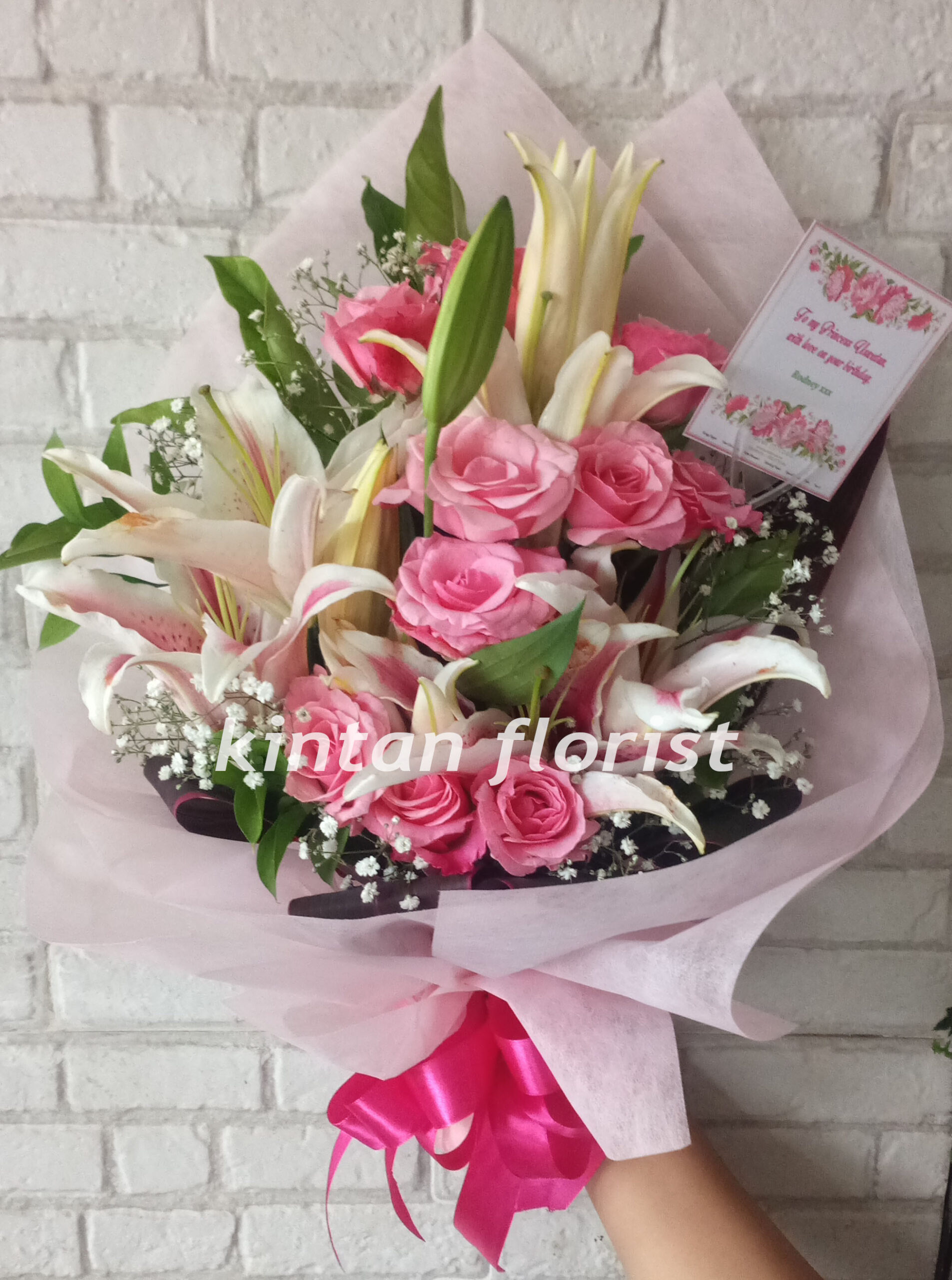 Home / Flower Arrangements / Love Celebration / HB044HB044Rp400.000Pink lily bouquet, soft pink roses, baby breath & leaves with wrapping paper & ribbons HB044 quantity add to cart SKU: HB044 Categories: Hand Bouquet, Love Celebration Product ID: 2573
